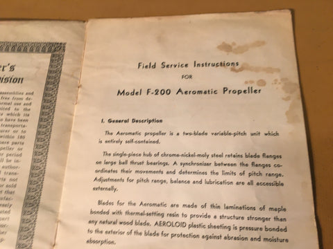 - This item is: Aeromatic F-200 Variable Pitch Propeller Field Service Instructions.